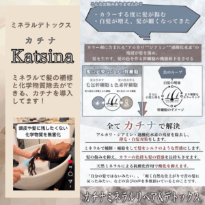 ☆ミネラルデトックスは、カラー剤の過酸化水素・アルカリ・ジアミンの除去無毒化。化学物質を除去するのでダメージレスなカラーリングを実現。